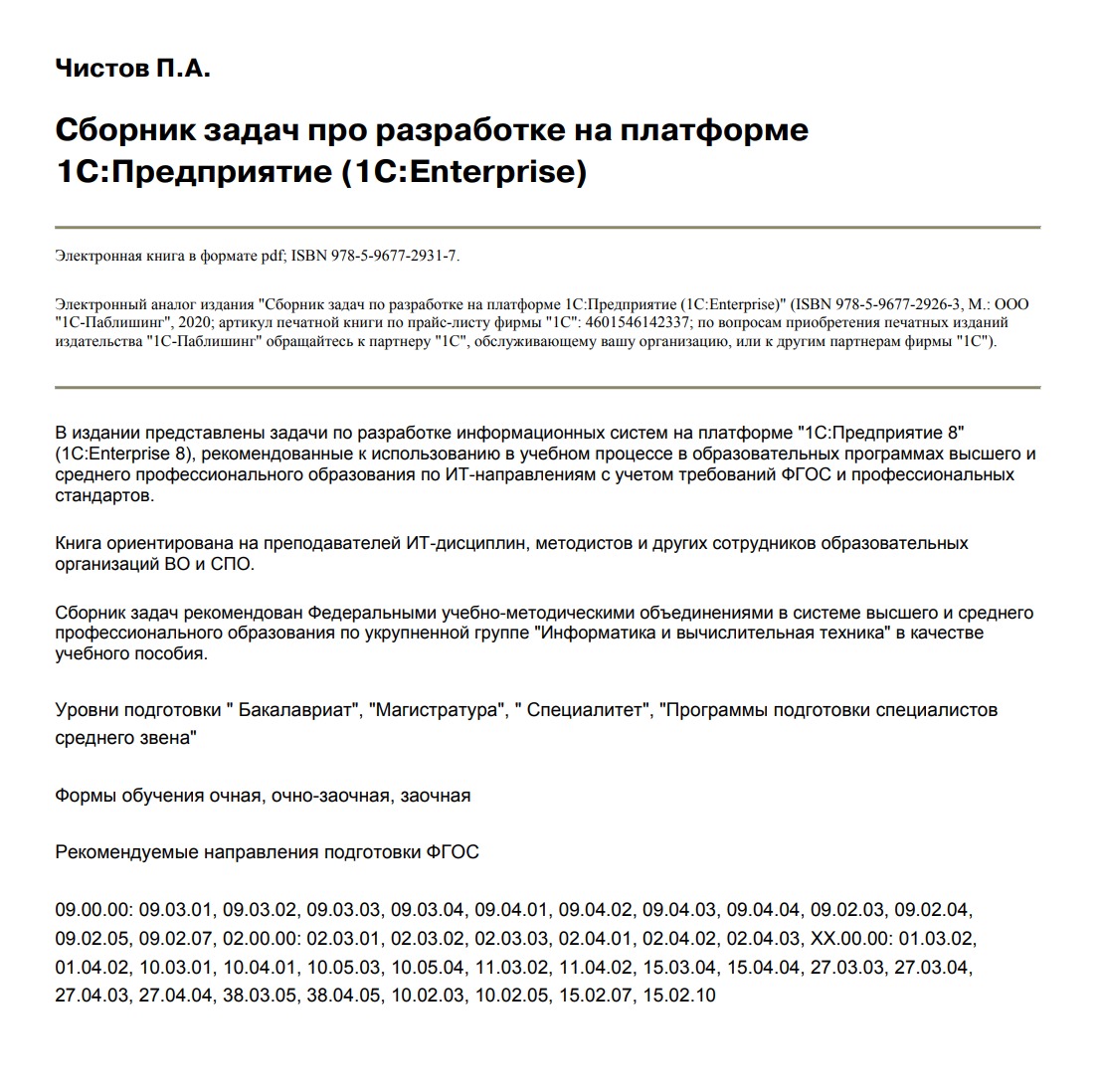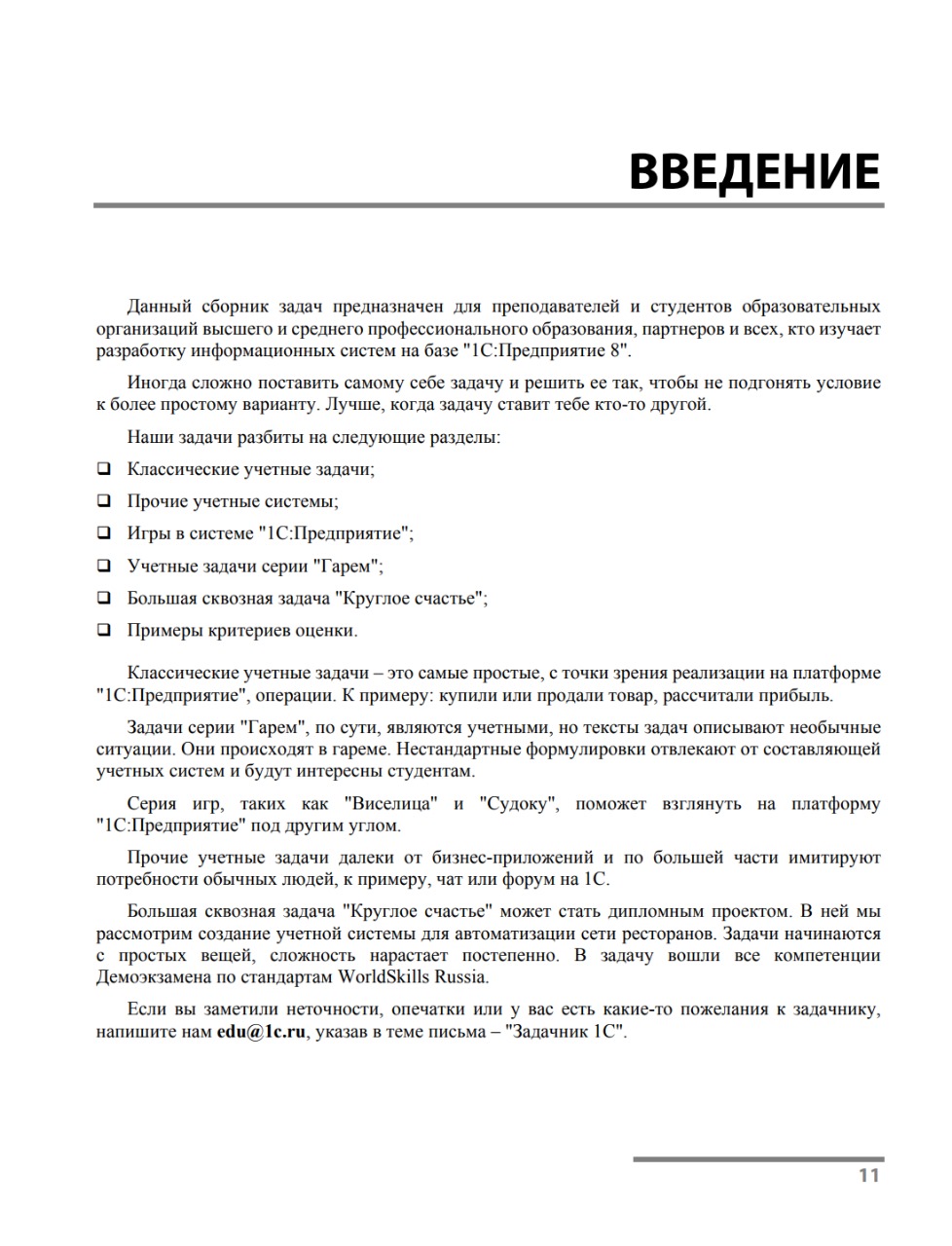 Сборник задач предназначен для преподавателей и студентов образовательных организаций высшего и среднего профессионального образования, партнеров и всех, кто изучает разработку информационных систем на базе «1С:Предприятие 8».
