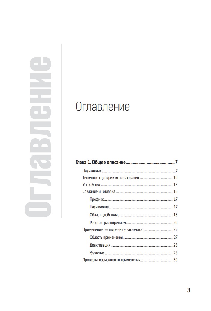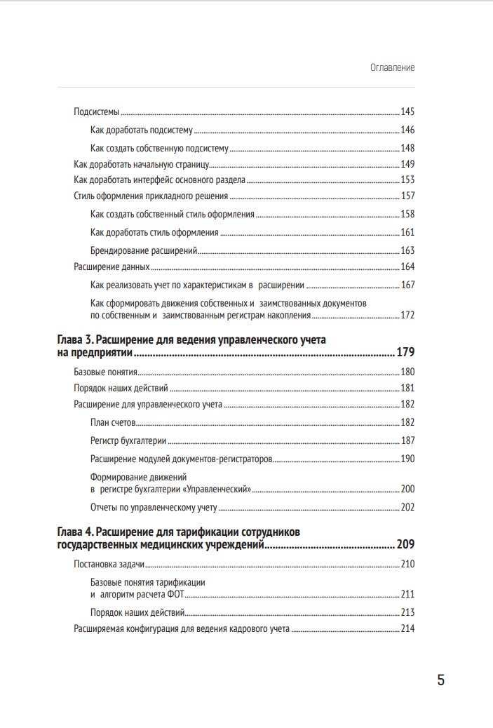 В первой и второй главах рассматривается общая архитектура расширений, и на большом количестве простых примеров показываются возможности доработки тех или иных элементов прикладного решения. Например, добавление учета товаров по характеристикам или адаптация внешнего вида прикладного решения к корпоративному стилю.