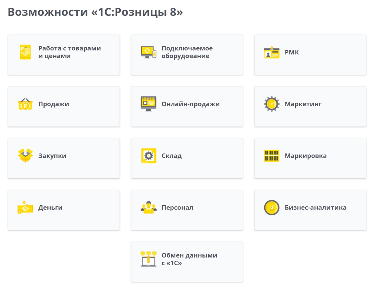 «1С:Розницу» можно использовать автономно или в связке с другими программами и мобильными решениями «1С».